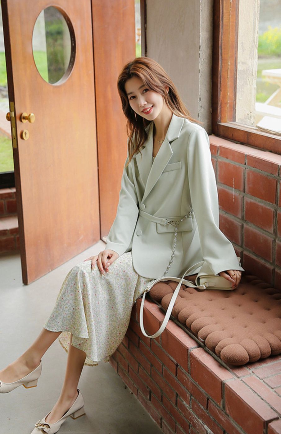 春天女生西装配什么裙子高级?薄荷绿西装+碎花连衣裙 温柔的女人味!(4)
