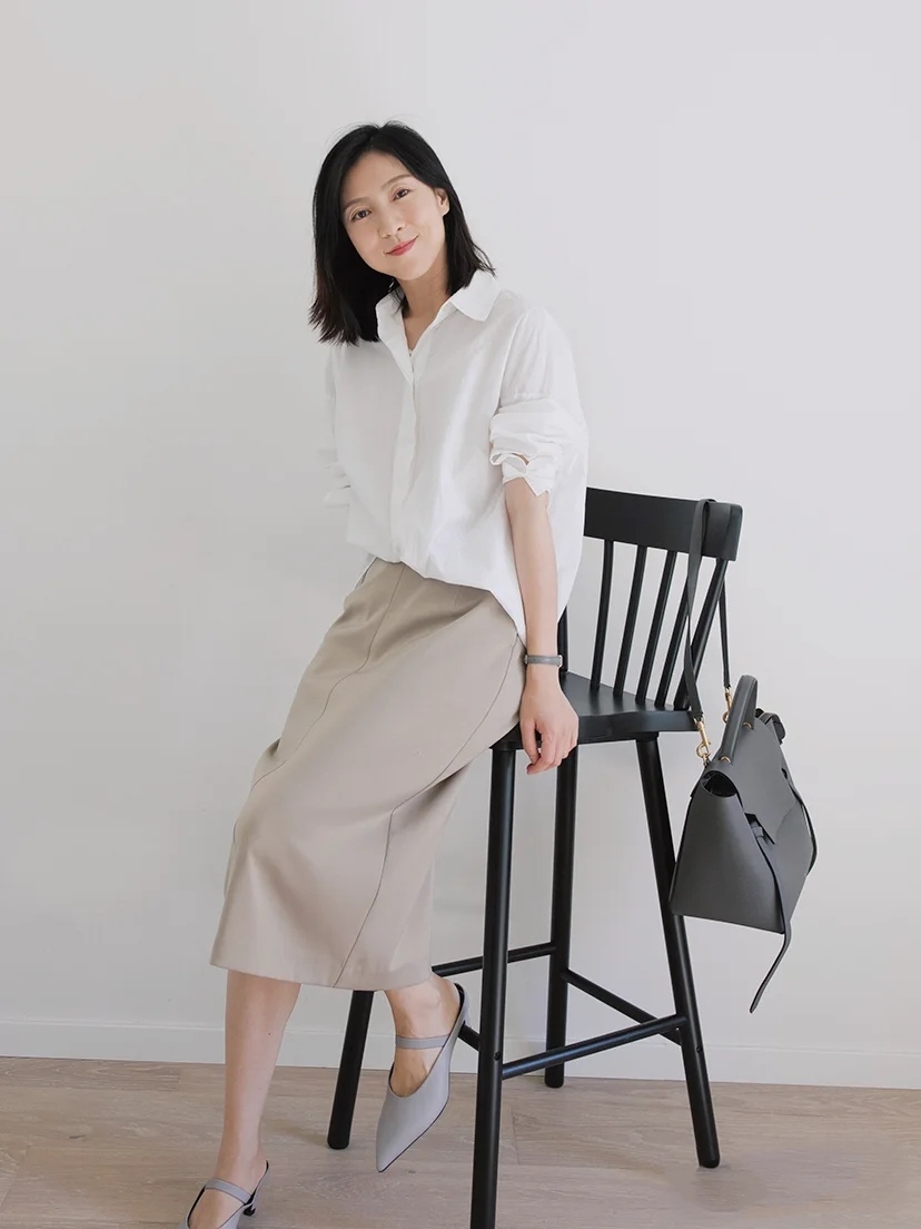 作为公司中的骨干力量,中年人的穿搭中怎么能没有衬衫呢?一件经典款式的白衬衫可以立刻将人带入工作状态,无论是谈合作还是开会都很适合。作为基础款单品,衬衫搭配西装裤或者西装裙都是很不错的,小编更喜欢搭配西装半身裙,温柔气质又不失正式的感觉。