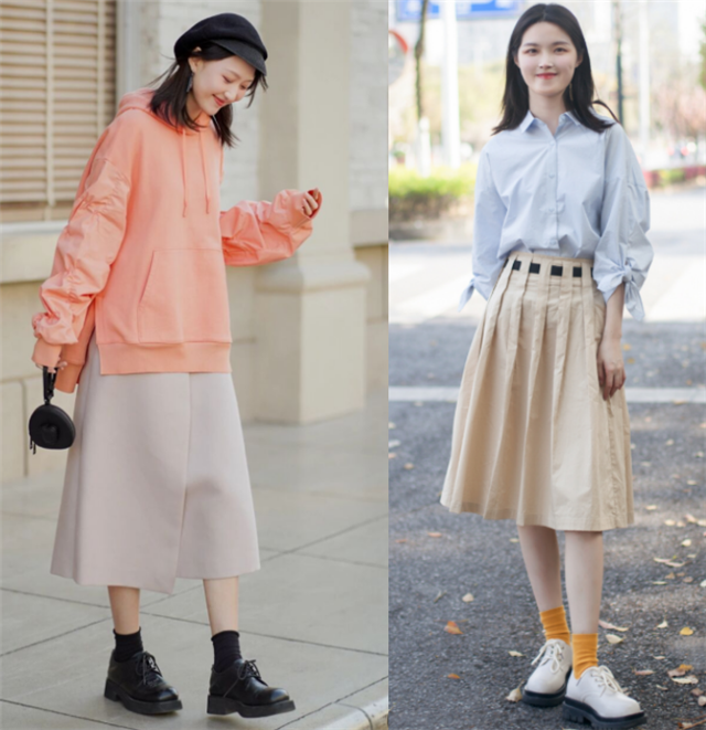 穿半身裙的时候,脚下的搭配也是关键,除了关注鞋子之外,你还可以学博主用短袜去凹造型,这可是当下比较受欢迎的一种穿搭哦。半身裙和短袜的结合温柔优雅,也能修饰一下身材。