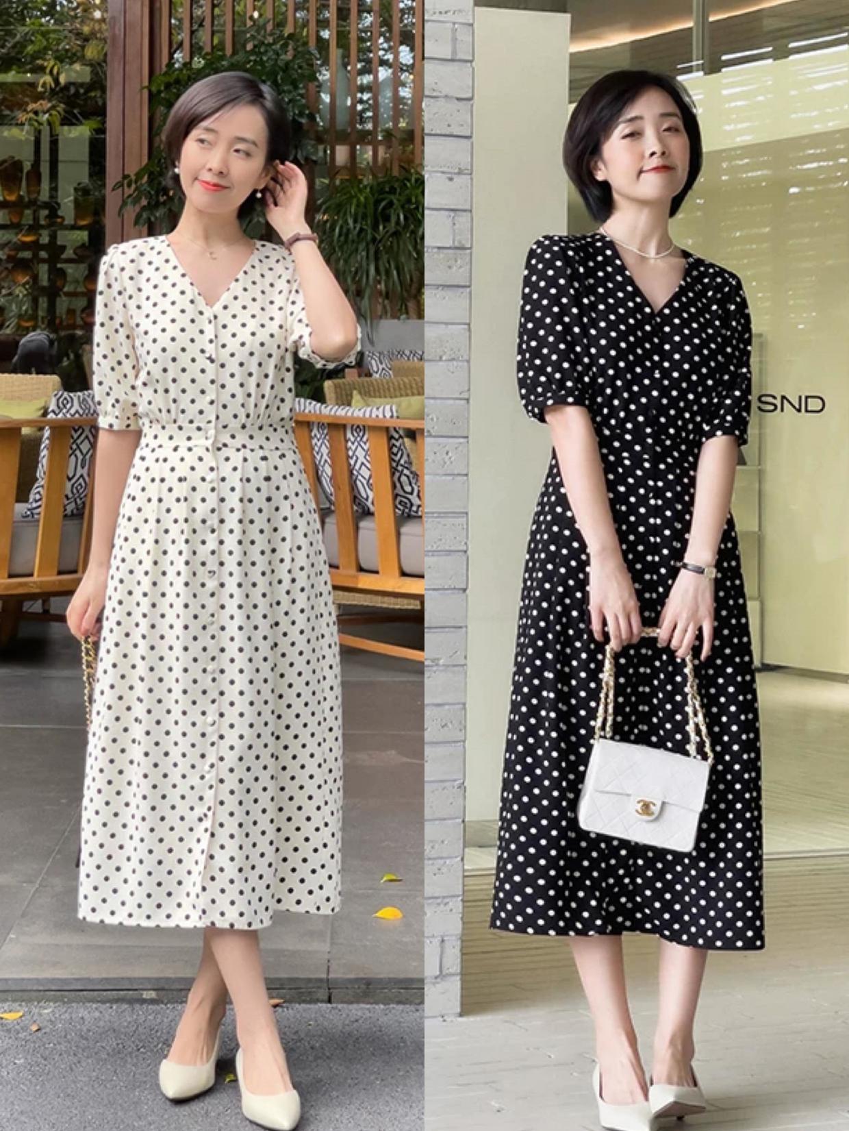 除了半身裙之外,相信大家也无法拒绝浪漫温柔的连衣裙。现在正是早春时节,快要步入夏天,天气也渐渐回温,所以不建议大家选择太花哨的裙装款式,像博主身上这种基础色波点连衣裙是再好不过的选择,既能展现视觉冲击感,也不会显得过于突兀,最重要的是,波点印花会注入可爱俏皮的气质,减龄感十足,就算是中年女性也可以放心入手。