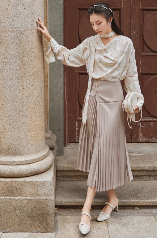 猫跟鞋其实严格算得上一款正式的女士高跟鞋,只是鞋跟一般低于5cm。所以,我们在穿猫跟鞋的时候,尽量配正装的裙子,比如西装裙,小黑裙,小白裙等看起来能够出入正式场合的裙子。