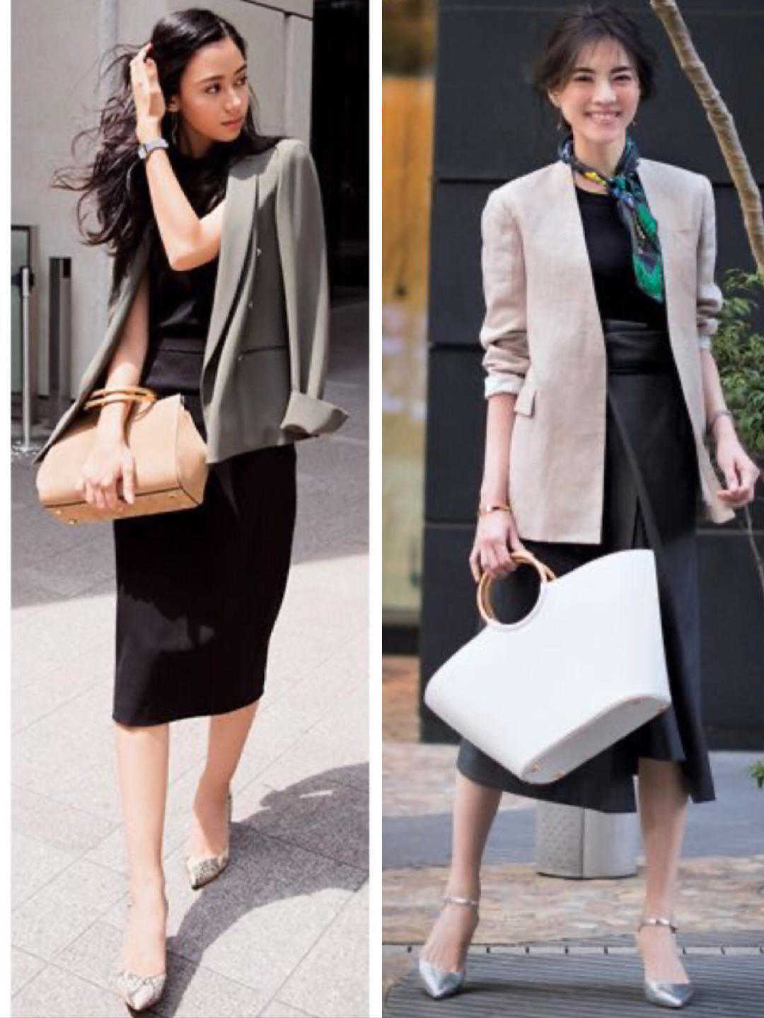 上班族如果要穿西装的话,打造出氛围感最好的办法就是去配裙装,无论是结合连衣裙还是半身裙都会很美,而且裙装和西装之间的叠穿搭配还能塑造层次感。但大家要注意一下,裙子的版型不能太宽松哦,修身的连衣裙更适合我们日常搭配。