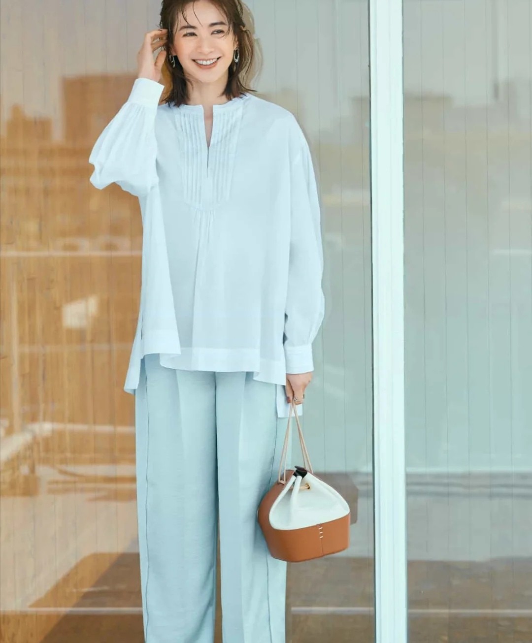 衬衫确实能通过色彩来变换外表,但无论时代如何发展,白色衬衫始终是最容易收获好评的单品。颜色的使用没有太多的约束,总是能形成一套简约又很高级的穿搭。