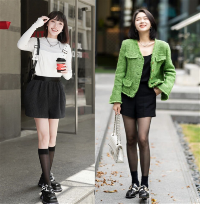 >>>黑色丝袜+小黑裙,借助同色搭配延伸比例