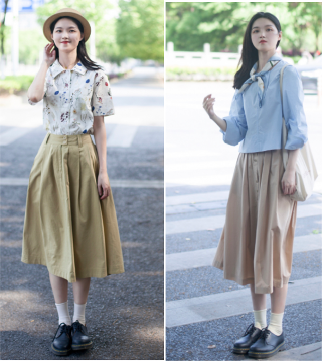 >>>短袜+半身裙+皮鞋,复古时髦还百搭