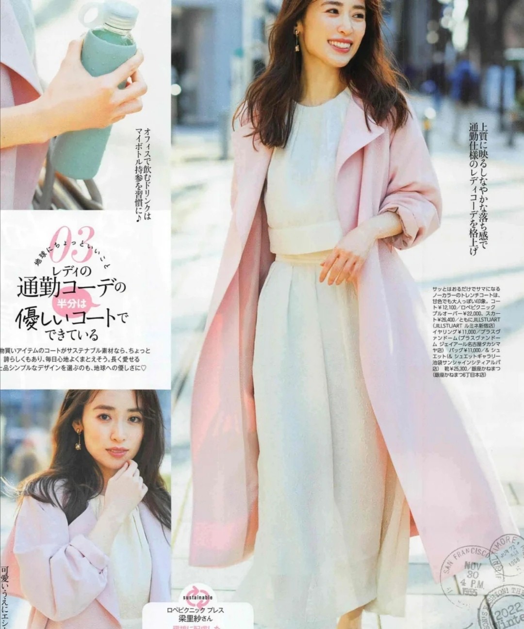 春天不能缺少很多展现美感的单品,长款风衣就是其中之一,在颜色的选用上,除了大家熟悉的卡其色之外,也可以尝试一下淡淡的粉色。这种色系可以弱化风衣形成的中性感,酝酿出轻微的甜美的氛围,很显气质。