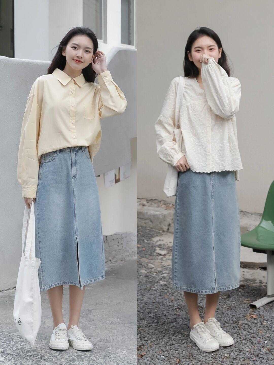 在春夏季节,我们可以选择的裙装特别多,牛仔半身裙就值得关注,牛仔的材质硬挺,有利于修饰胯宽问题。梨形身材基本上都会喜欢这种单品,而且穿上也很简单,搭配上平底鞋还挺轻盈的。