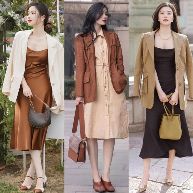 如果喜欢比较亮眼一些的穿法,那就可以用白色搭配大地色系,可若是喜欢更加沉稳一些的风格,更推荐你尝试黑色与大地色的搭配。可如果你更喜欢高级一些的穿法,那就比较推荐你尝试一下大地色系的“同色”组合,更能展现优雅成熟的魅力。