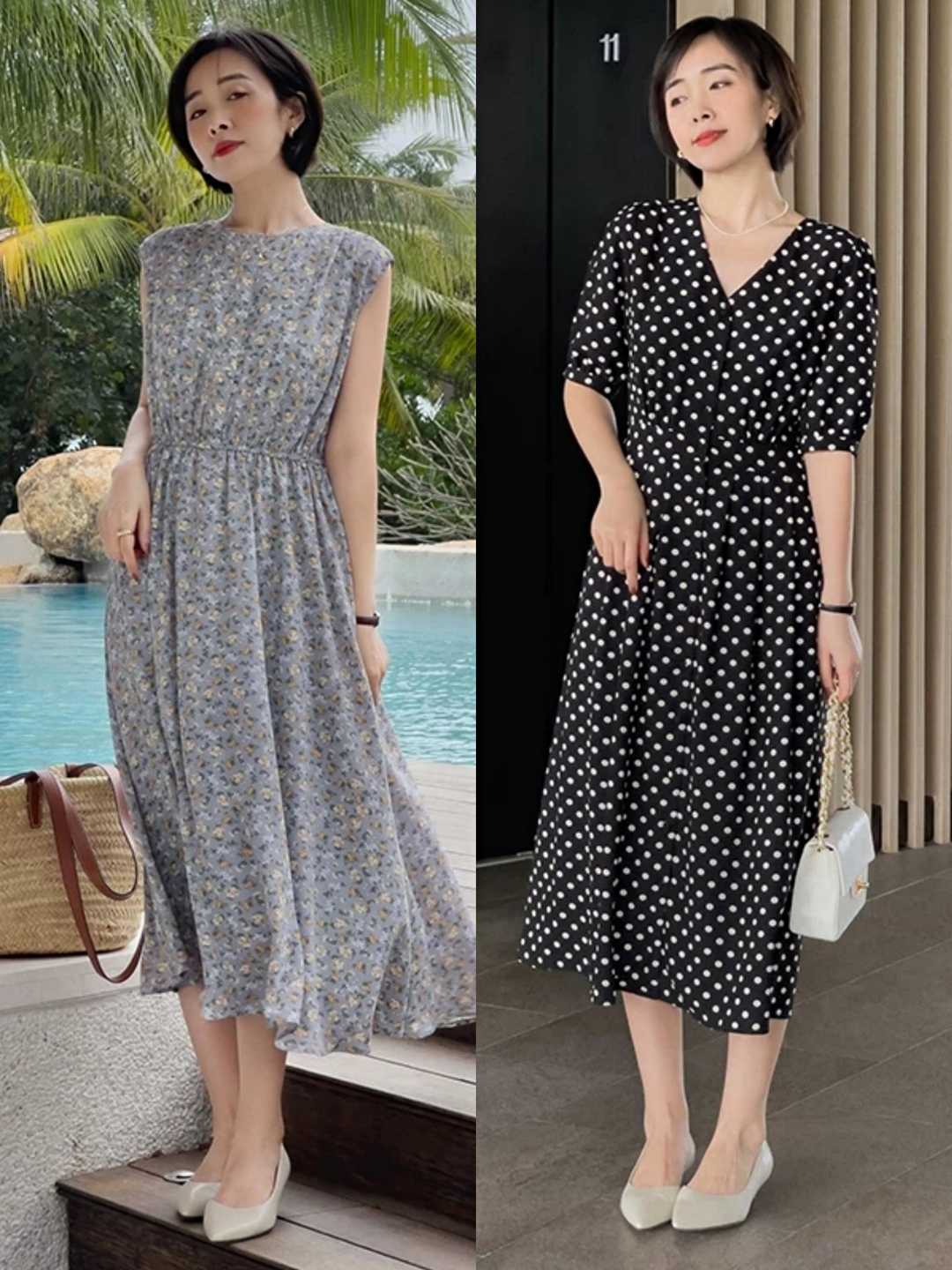 选择连衣裙的时候,你也可以试一试今年流行的波点或者是碎花连衣裙,用这些小小的碎花或者波点元素去点缀,能够帮助我们增强时尚感,让你的穿搭看上去更个性,像博主这些时尚的连衣裙搭配都很值得参考,各式各样的花纹和各式各样的花色点缀,瞬间就能够凸显出好气质。