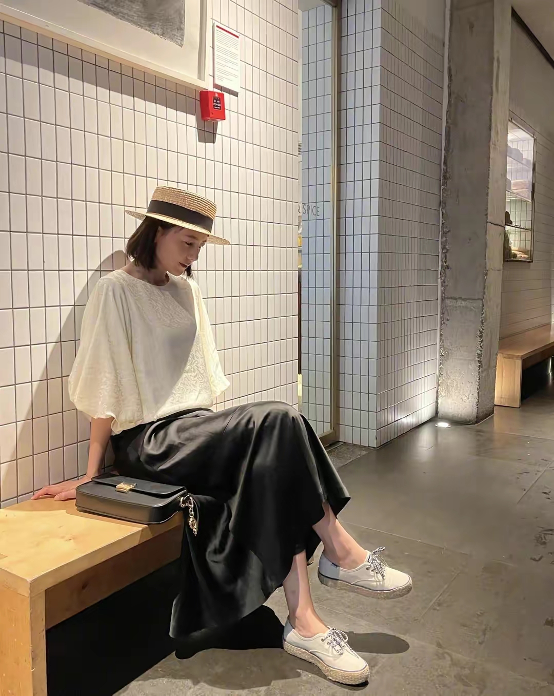 春天黑色半身裙搭配什么上衣好看?针织开衫+圆领T恤 温柔又可爱(4)