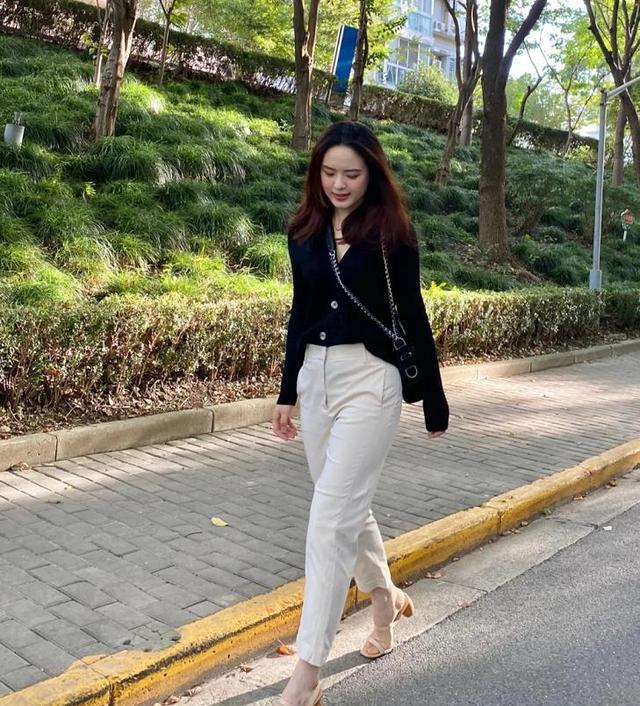 上身即便配了一件黑色针织衫,也没有太大问题,经典的黑白配色,真的是怎么看都不觉得腻,很时髦耐看,还给人一种高级感。▼