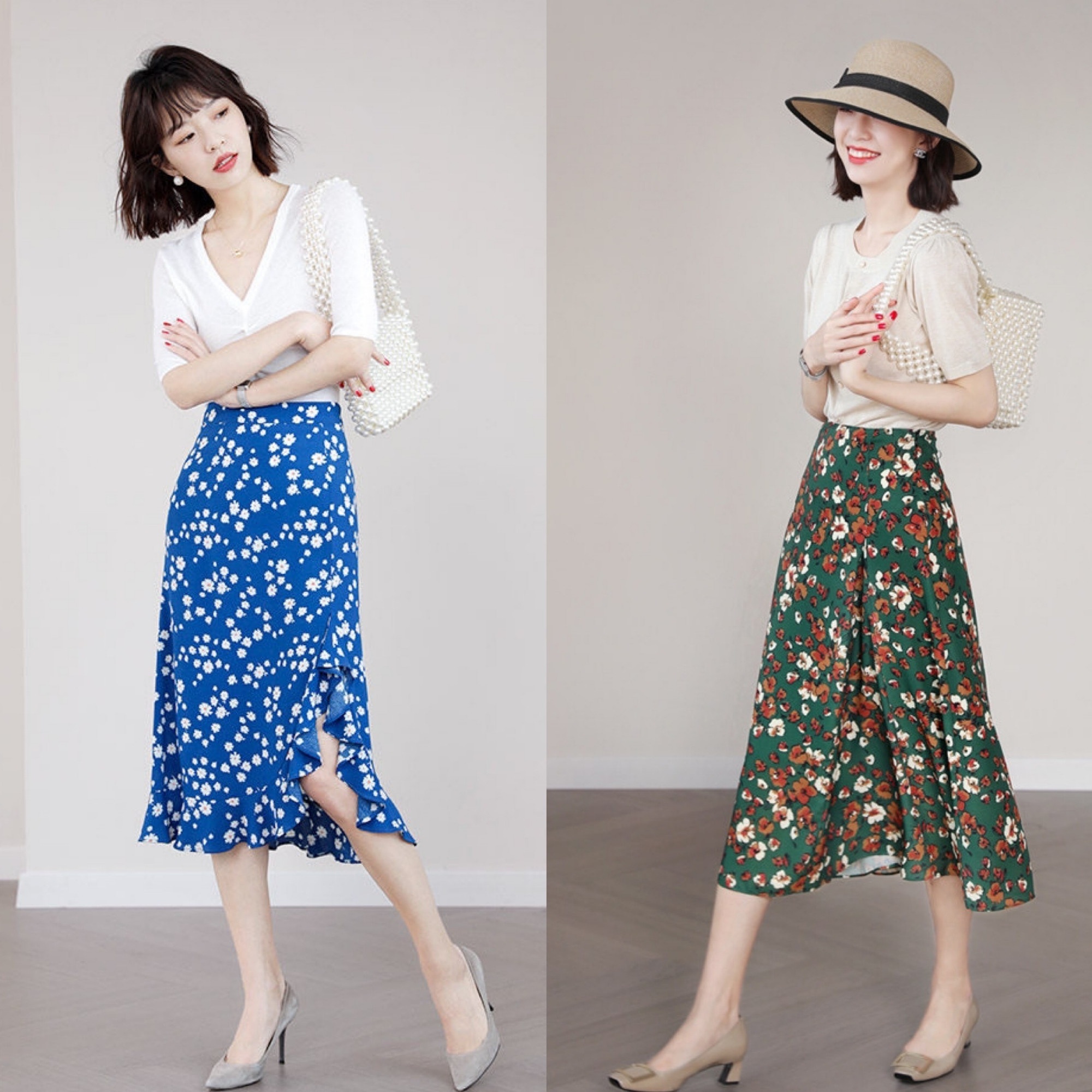 但要想穿出更符合春夏氛围感的造型,那还可以试试纯色上衣与碎花裙的搭配。碎花裙带有甜美清新的效果,不过对于30岁的女人来说,为了避免穿出装嫩的嫌疑,最好是入手深色系或是中性色系的碎花裙搭配白色上衣。用白色上衣提亮造型,深色系碎花裙增添成熟稳重的效果,更能演绎出轻熟风的魅力。