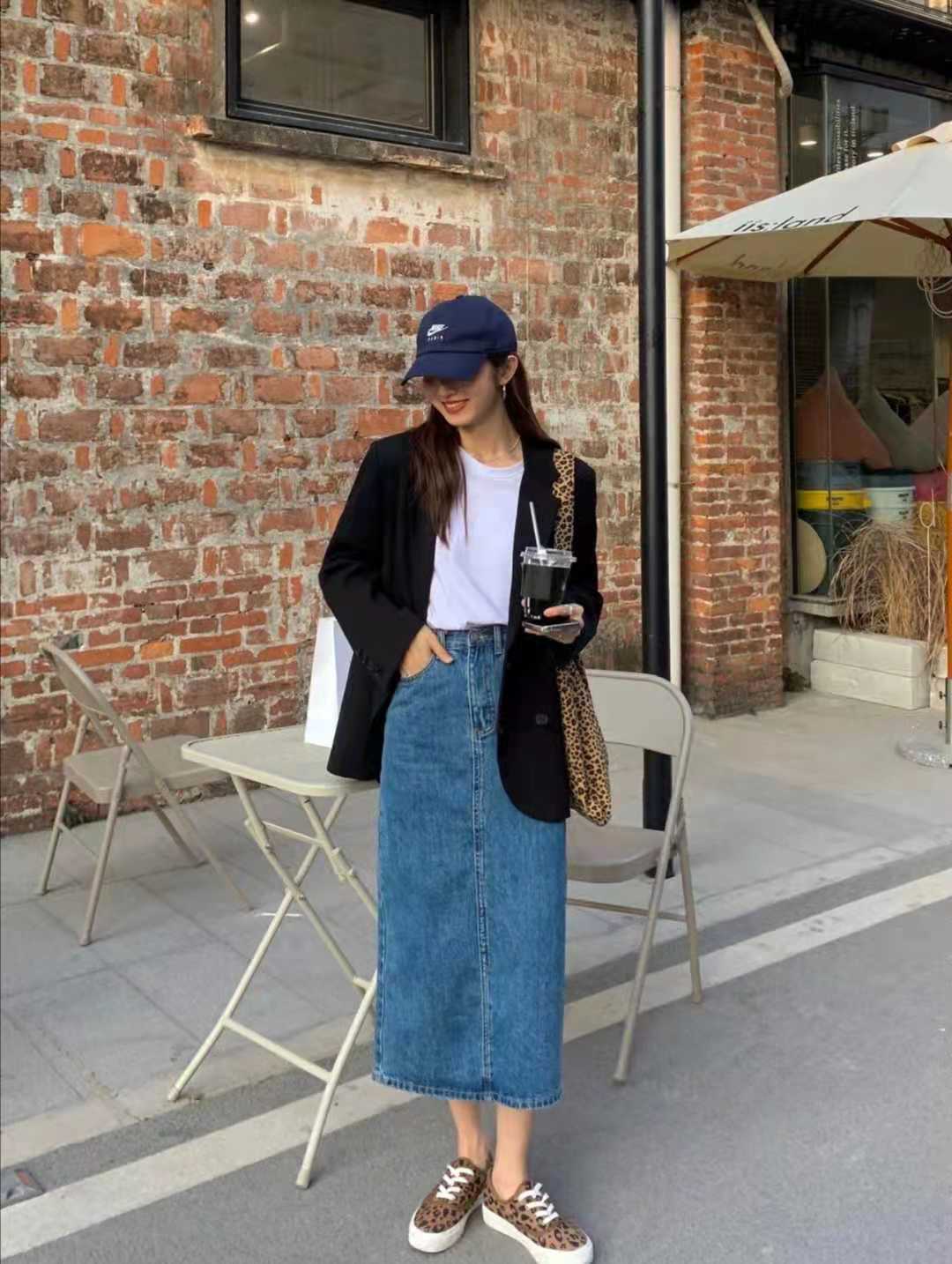 反而更应该选择面料硬挺的裙子,比如西装面料、牛仔面料等,都能很好的掩盖缺点。