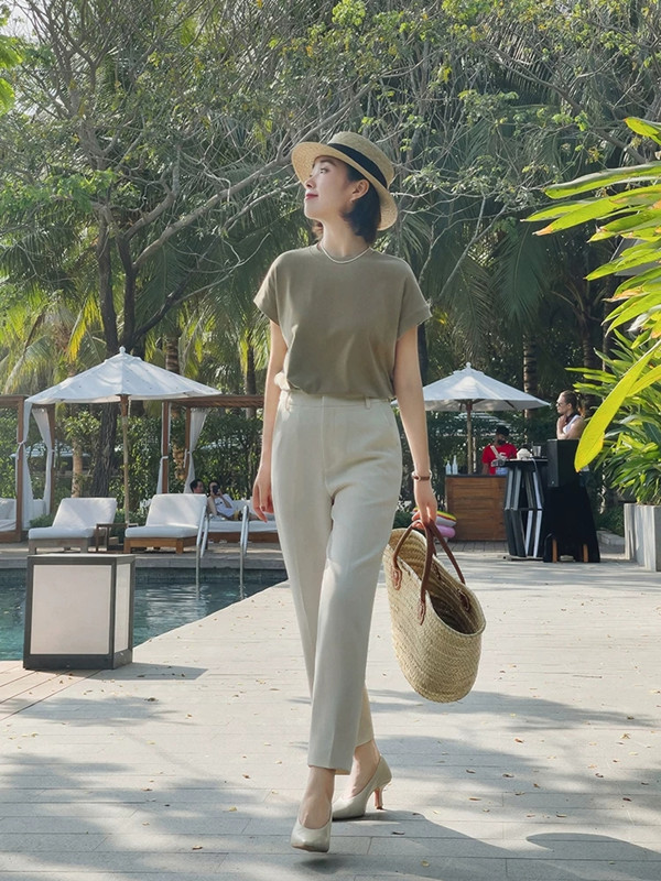 真正会穿搭的女性,从来不会用昂贵的配饰或者是名牌服装堆砌在身上,而是懂得款式的重要性。毕竟,好品味在于着装是否得体与舒适,而不在于价位高低。简单的T恤配上九分裤,这样的造型看似毫无新意,殊不知就胜在了「简单」二字上。