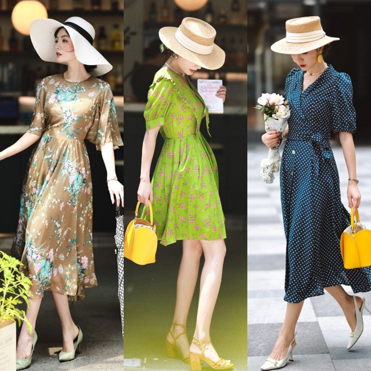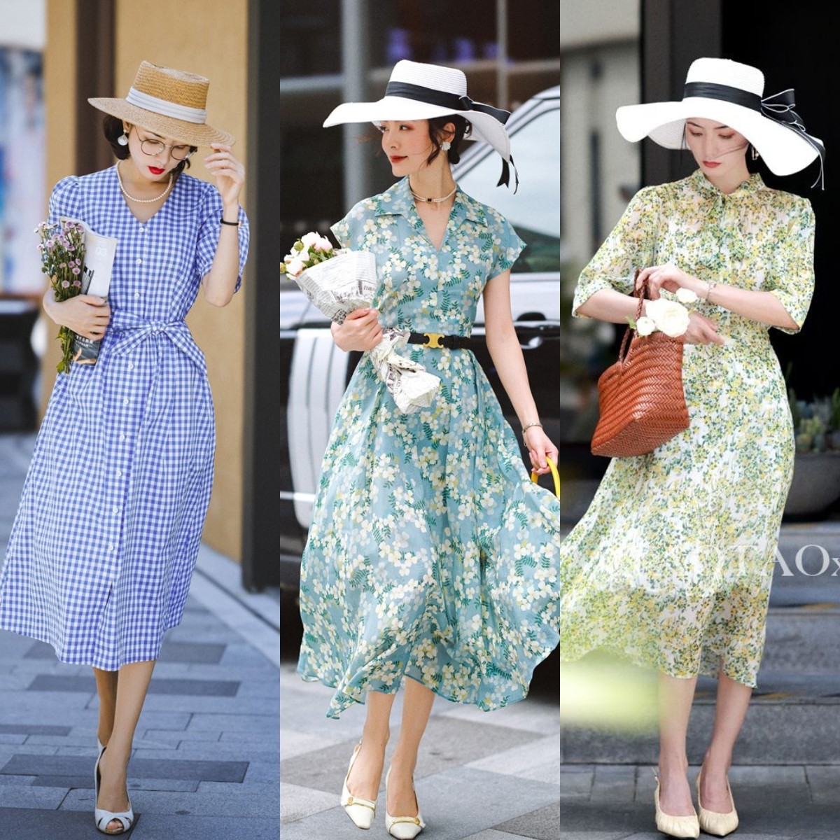 方法四:碎花裙+宽檐帽,法式感瞬间拉满
