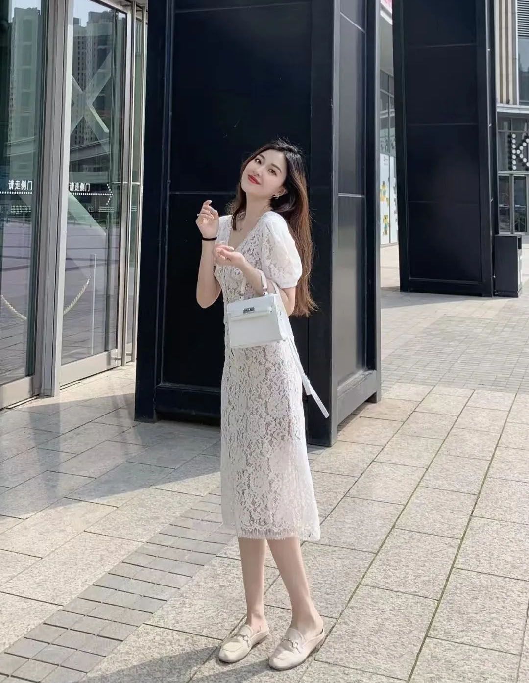 并且,在选择用连衣裙搭配乐福鞋搭配的时候,连衣裙的选择也很重要,尤其是裙长的选择。建议在搭配乐福鞋穿搭的时候,连衣裙的裙长选择尽量保持在脚踝以上,这样能够在穿搭的时候露出脚踝,从而达到延伸腿部线条、显高显腿长的效果,再配上漂亮的裙子,时尚感会更强。