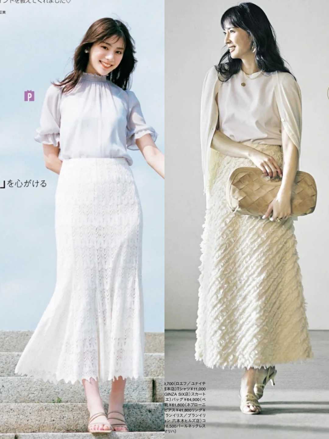 因为现在是春夏季节,浅色的服饰往往更受欢迎,所以大家在穿裙子的时候可以多去尝试浅色系,像博主下面这些白色或者是米色的裙装都很值得关注。这些浅色系看上去非常的温柔,穿在身上也很减龄,针对年龄偏大的女性来说都是可以借鉴的。