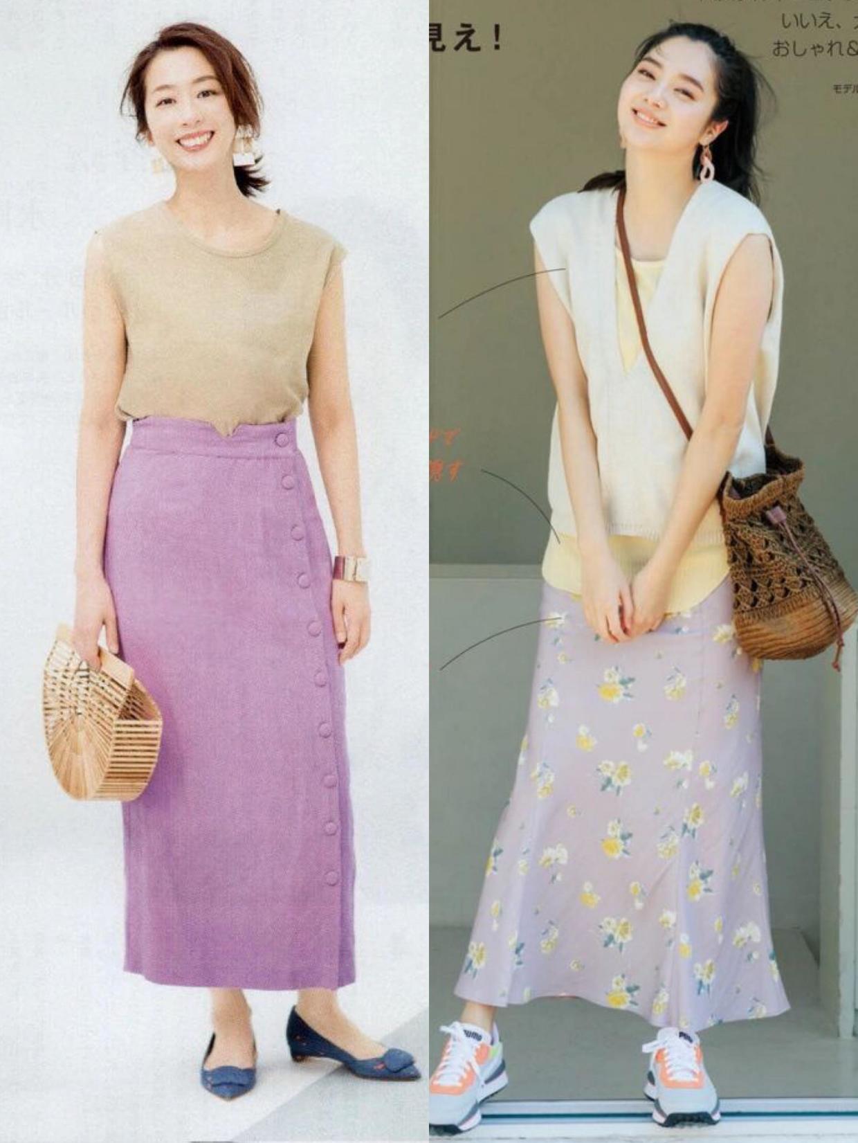 紫色半身裙是今年比较流行的款式,紫色是最优雅神秘的颜色,所以更受成熟女性的欢迎。深紫色高贵典雅,淡紫色软糯甜美,可以在它的基础上点缀一些黄色的小印花,这样就能充盈视觉效果,也很有春夏的气息。