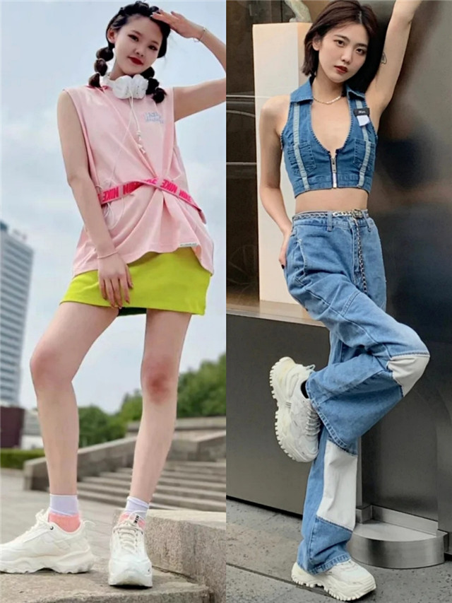 说到休闲感的穿搭,必然离不开老爹鞋,夏季穿老爹鞋最适合匹配一些运动风的服装,比如牛仔裤或者是运动套装,这些服饰都非常的时髦,还可以结合上短袜体现层次感。