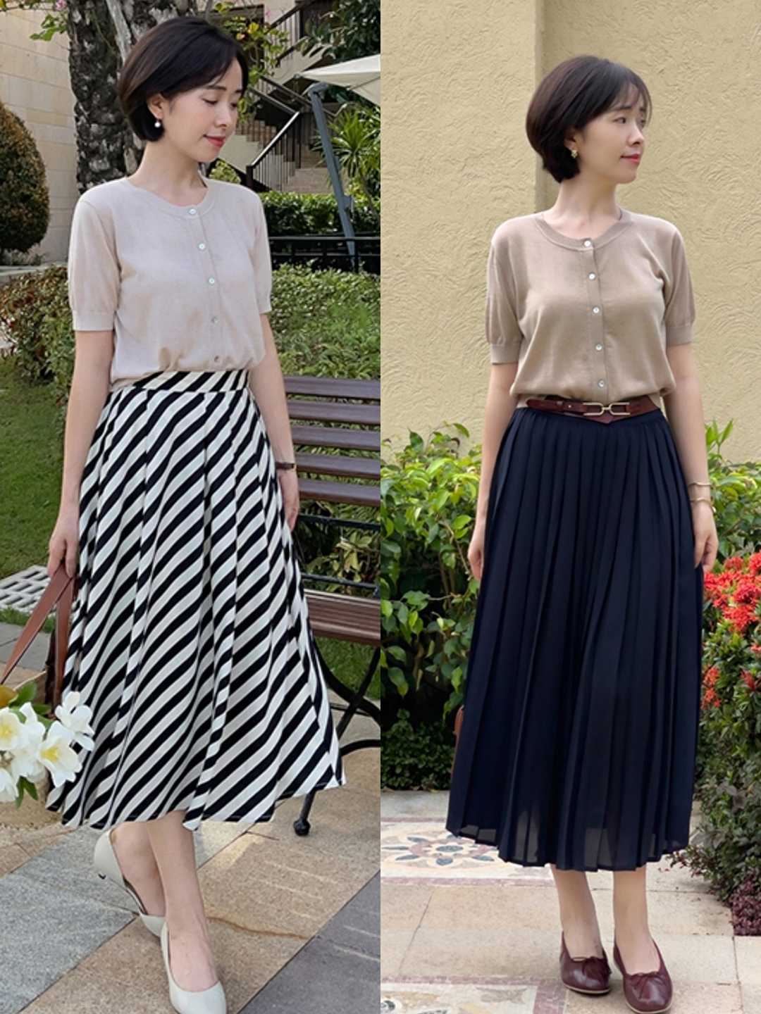 高跟鞋怎么穿搭出高级感?针织短袖搭配长款半身裙 妥妥的气质女神(3)