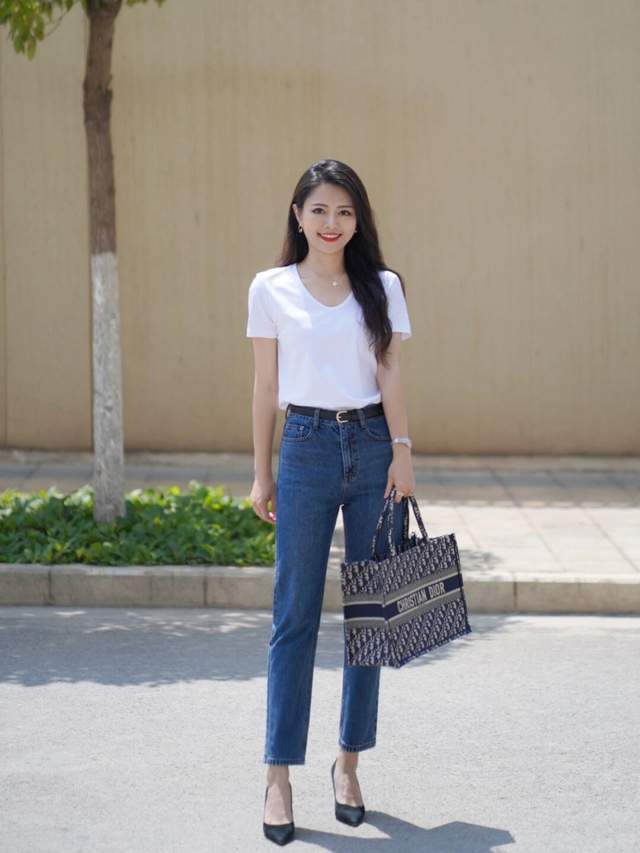 所以牛仔裤的面料要柔软,透气性还要好,像博主穿搭的这条牛仔裤的版型还是很不错的,直筒的设计,这对于腿型粗胯骨宽的女性来说很适合,可以把小腿缺陷遮住,让你拥有笔直修长的腿型。