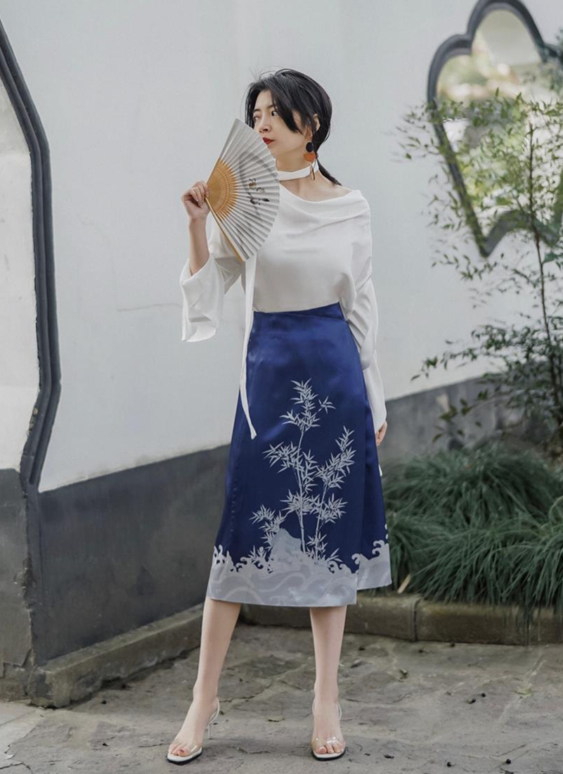 在夏季的穿搭上,如果大家想穿出极具古典气质的穿搭效果,建议借鉴三木博主的穿搭方式,选择一款露肩上衣+古风花纹半身裙进行搭配可以轻松穿出亮点以及松紧结合的搭配效果,让整个人看上去又瘦又高。在这样搭配时,建议选择不太突出、设计简单的高跟鞋进行搭配,如果太过花哨会有损古典的气质。