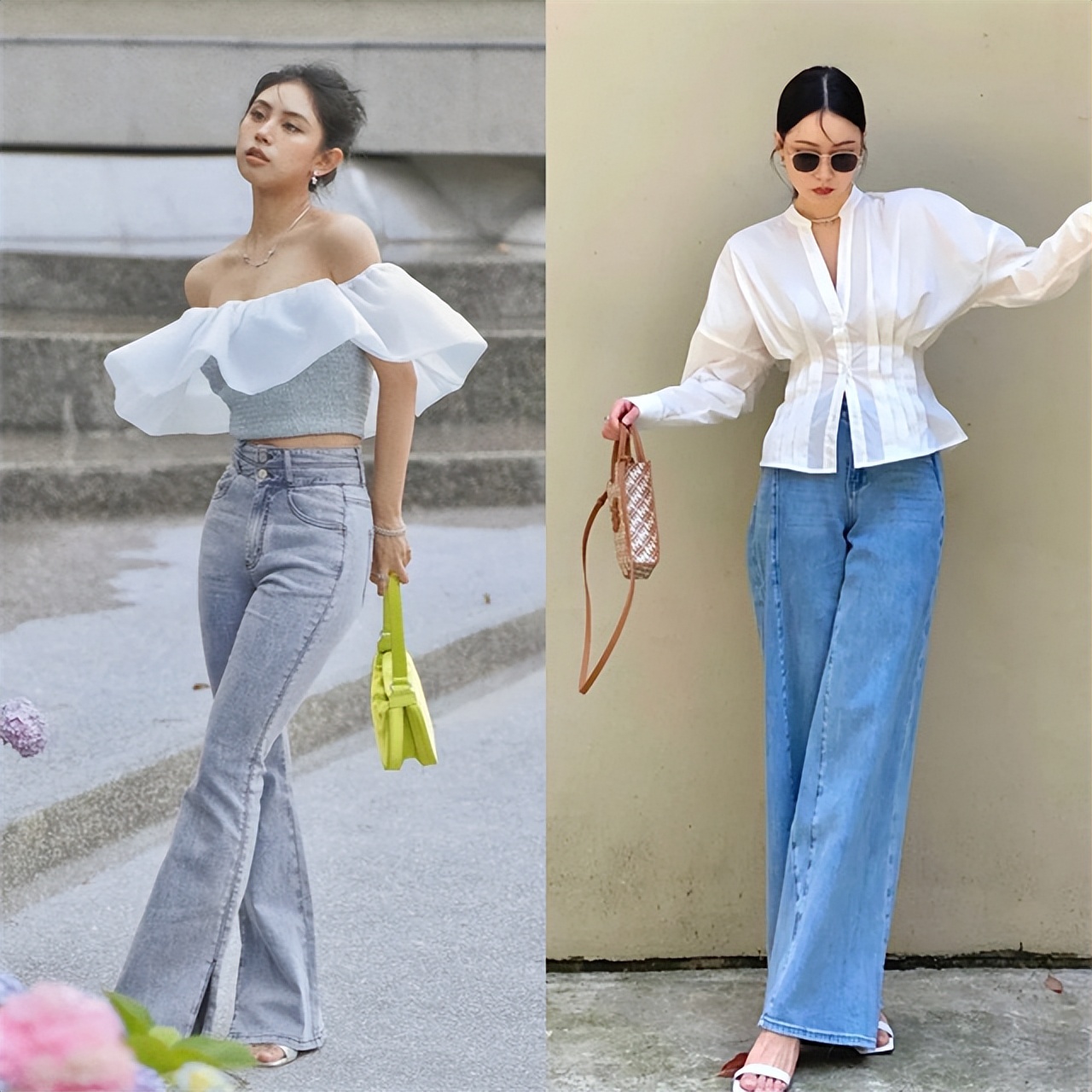 但可以试着选择上面这种设计华丽或偏甜美复古的上衣,和牛仔裤的休闲简约风格碰撞,绝对能让人眼前一亮。但是这种穿法,一定要把高腰线安排上哦~