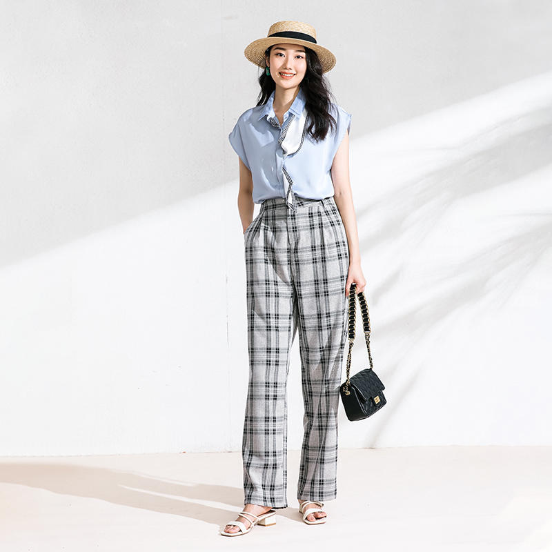 落肩无袖的设计:在一定程度上可以修饰肩部的宽度,将手臂上的拜拜肉完美遮挡。对于可能存在“蝴蝶袖”的40岁女人,衬衫版T恤这样的设计,也是为了更好的防止自己的缺点显露。