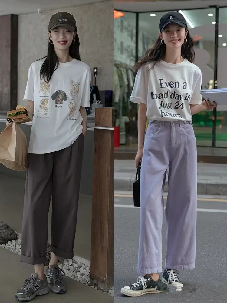 浅色的牛仔裤无论是紧身的,还是宽松的,都不推荐大腿有点胖胖的人穿,主要是会太显腿粗然而腿够细的人穿上之后,清纯还文艺的效果救护特别的明显的。大家可以在搭配的时候选择内增高的鞋子,并且搭配上短款的服装,这种稍微有点紧身,颜色还浅的七分裤是比较挑身材的款式。