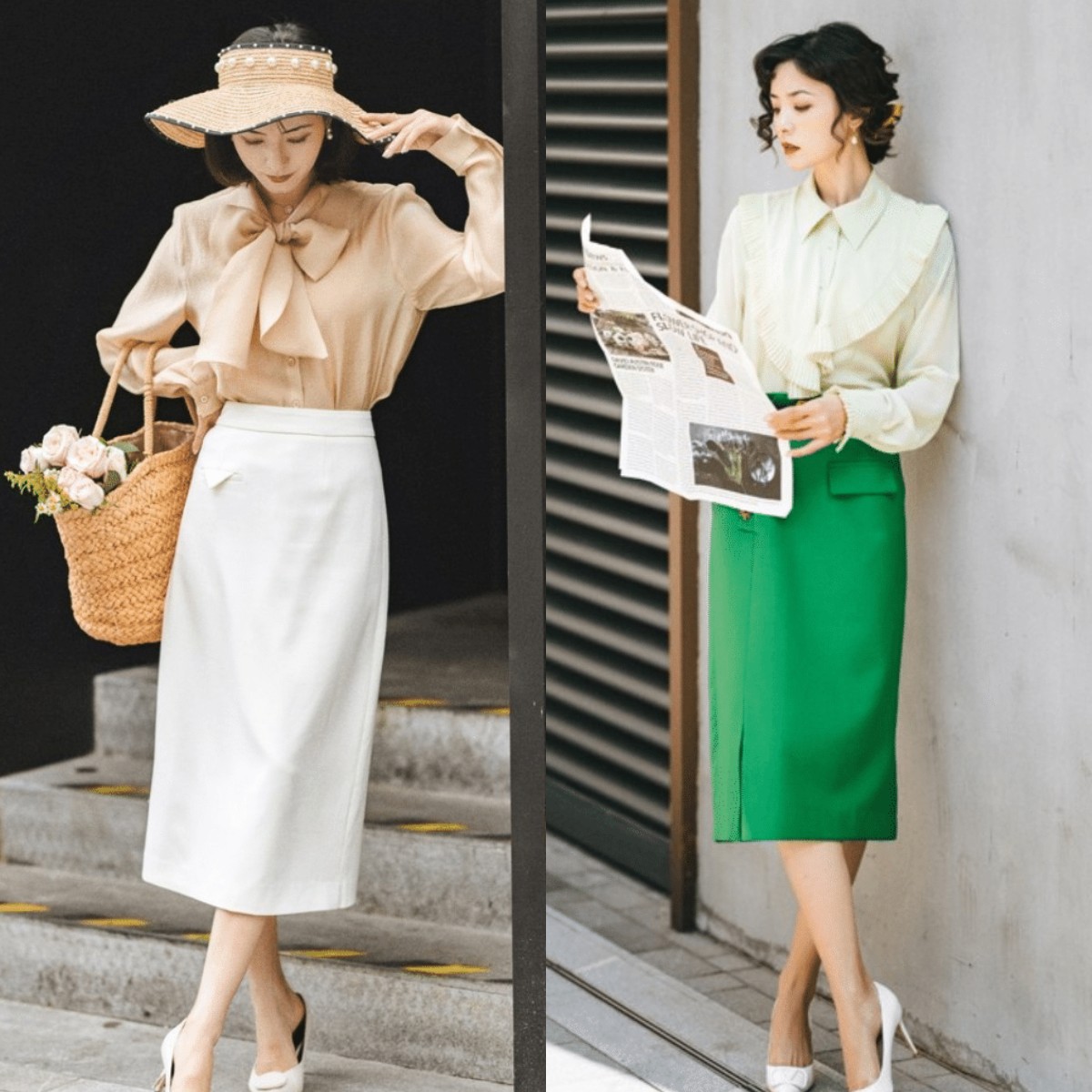 铅笔裙在半身裙里也占据着重要的半壁江山,其版型虽然比较修身,但也不会像包臀裙那样对身材的要求比较高,各种身型的小姐姐都可以尝试。