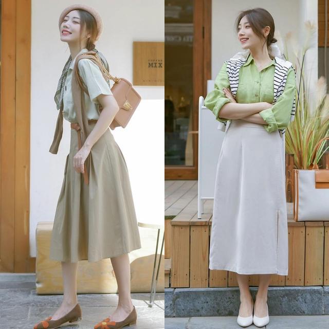 夏天怎样穿出优雅知性气质?不妨试试“浅色系衬衫+半身裙” 好美!(2)