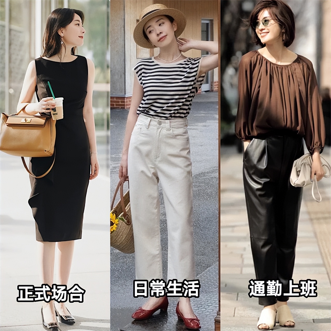 正式场合就要多使用正装,可以使用简约的轻熟风配饰增加质感。日常生活可以休闲个性一点,用图案或彩色单品增加活泼性。