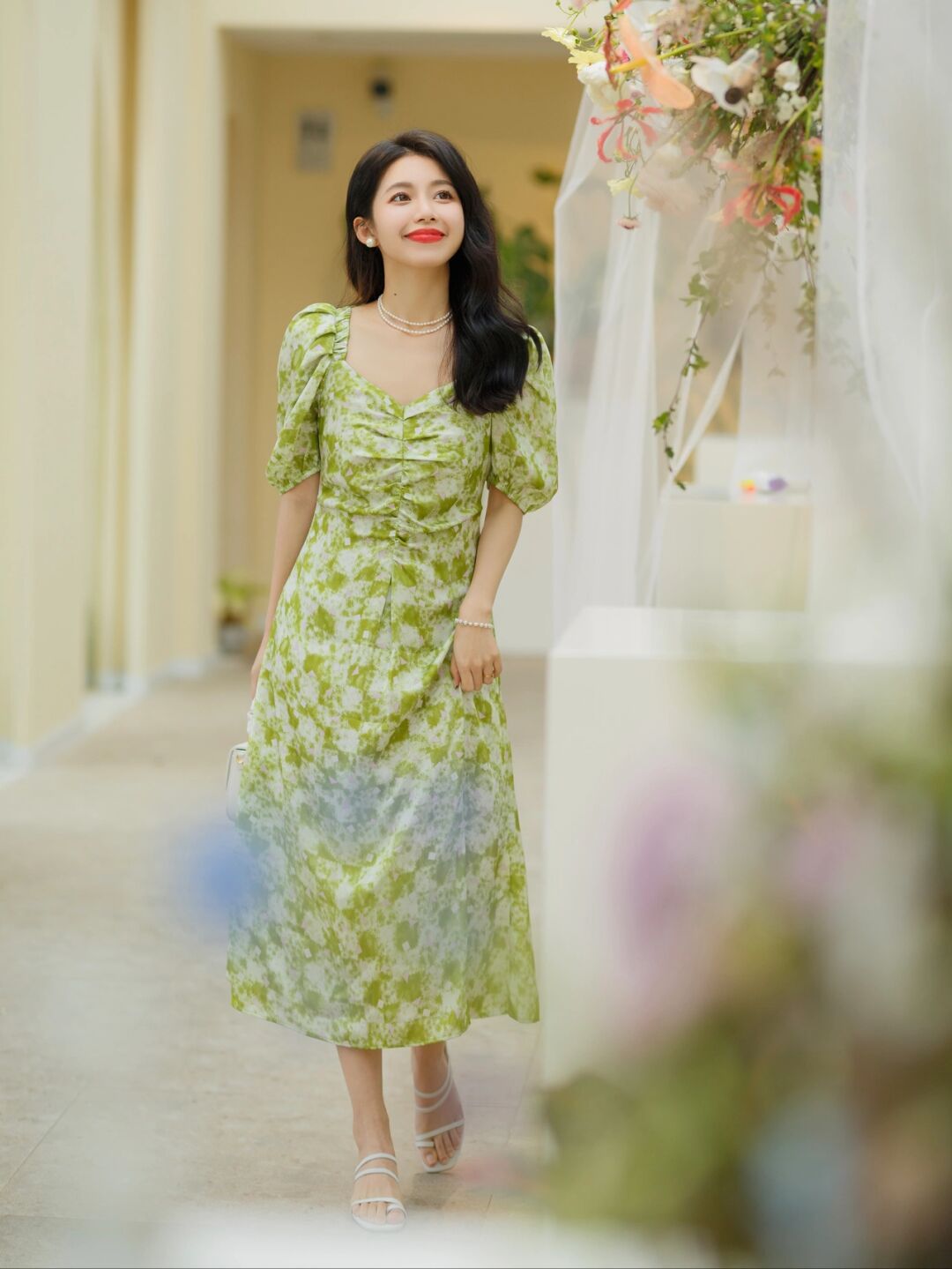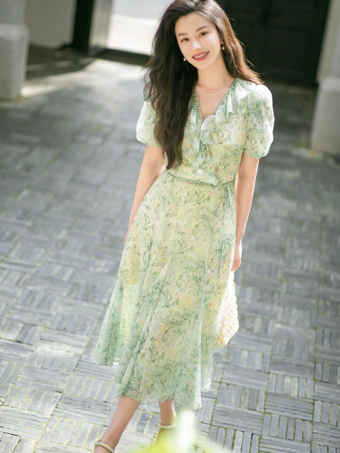 绸面哈密瓜色的碎花连衣裙,穿起来很减龄,清纯少女感扑面而来,这个夏季这样穿太适合不过了,普通女孩子也能轻松驾驭,美如小公主一般。