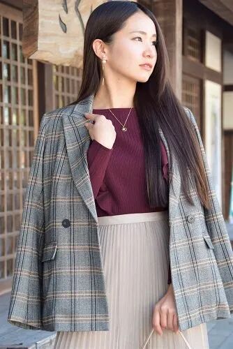 ▲格子西服自带秋冬季主角光环,也属于百搭单品,不管是长裤或者百褶裙都可以轻松契合。