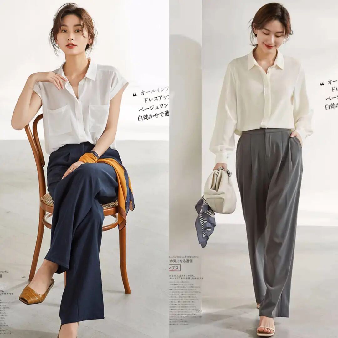 因为那些材质薄、柔软、容易起皱的单品与岁月沉淀的气质不匹配。所以在职场穿搭中,廓形简单的衬衫,我们应该更加注意单品的质地,并考虑更多的面料、工艺、光泽等方面,如丝绸和缎子衬衫。气质项目应该简单而不是简单。