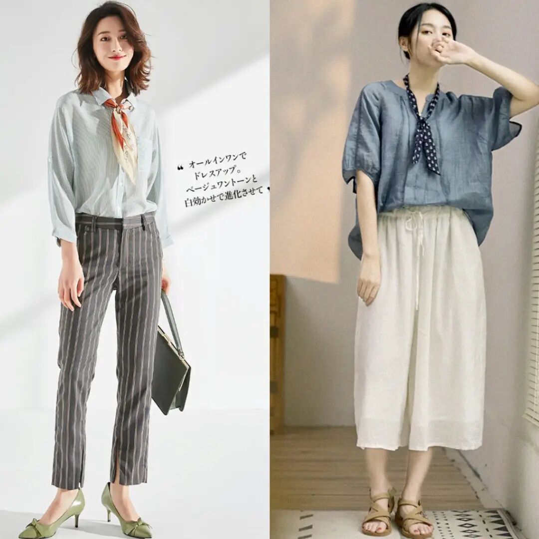 有时候,一件非常基本的衬衫,因为添加了一点元素,就像换了一件新衣服,所以我们真的可以在日常搭配中改变我们的想法。哦,用丝巾装饰也可以改善视觉亮点,给人一种高、气质、精神的印象。