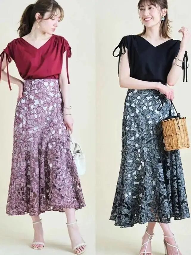 半身裙相对比裙子更多样化,因为裙子本身的风格设计非常多样化,但也可以通过搭配不同风格和风格的夹克来突出风格搭配的丰富感。对于腿不直或腿相对强壮的女性,在穿裙子时可以尝试更宽松的伞裙,这种开放的裙子非常包容,足够舒适。