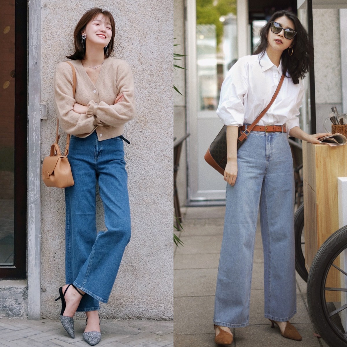 30、40岁想要穿出减龄感的小个子姐妹们,推荐选择下图中模特上身的牛仔材质阔腿齐踝裤。牛仔材质自带休闲感和时尚感,结合阔腿版型慵懒且高级,不管搭配什么款式的上衣都能给整体风格增添一丝休闲和俏皮,减龄效果满分。