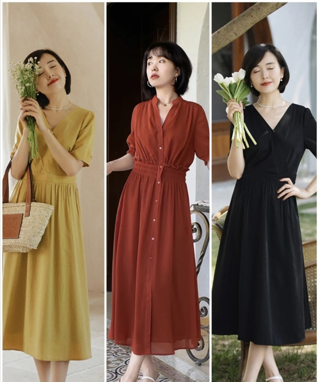 这三条连衣裙都是很大气的存在,在衣柜里占据经典的位置也一点都不困难,黑色裙装营造沉稳的气质,简单清爽的白色连衣裙可以释放出清新而减龄的效果,加入腰带的配合,对身材进行修饰更方便。