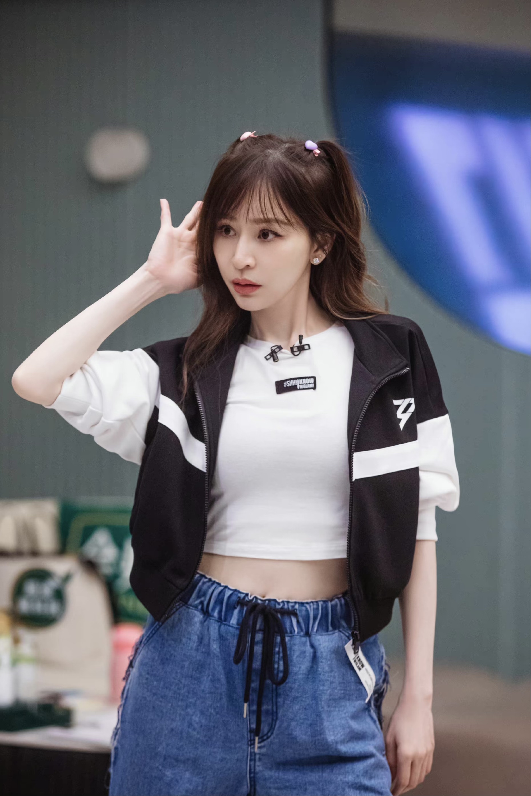 私底下训练的时候,我们发现王心凌小姐姐大部分的服饰都是短款修身上衣加上高腰裤,的确,这样的穿搭模式比较普遍,但对于小个子来说,想要在服装上有显高的视觉效果,这个也算是比较有标杆性的模式了。
