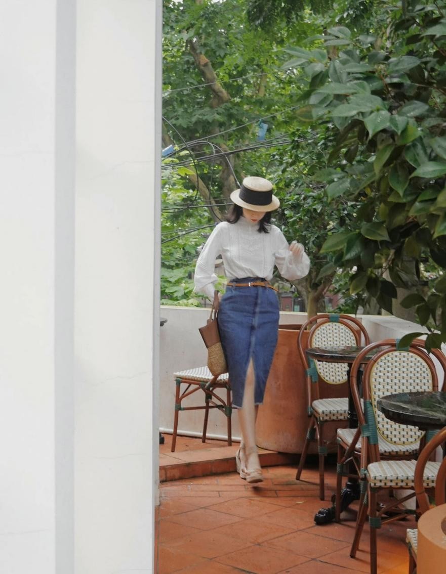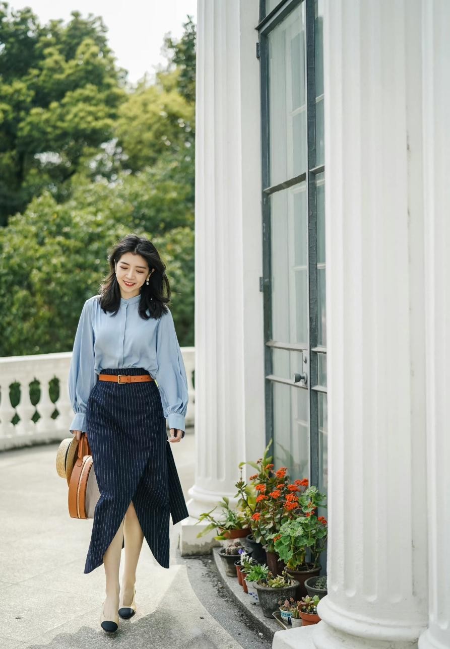包臀裙的搭配原则把握住一点就好:上衣不宜过分暴露。因为紧身裙本身就是一个极具女人味的单品,与性感上衣配合在一起容易显得风尘,像是三木这里的穿搭,选择的就是一件灯笼袖白衬衫,别出心裁的柔美廓形彰显着浓郁的古典宫廷风,下装搭配牛仔包臀裙,将休闲随性与妩媚优雅平衡得恰到好处。