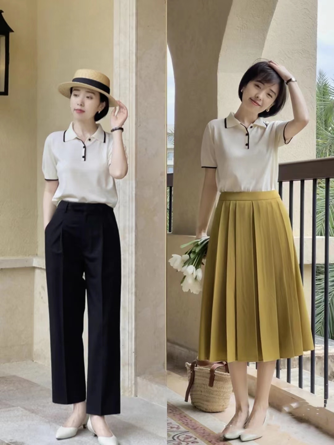单品选好了,接下来就是该考虑如何搭配了,最简单的方式就是基础款+基础款,比如T恤+牛仔裤、衬衫+半身裙,单品均已基础款为主,没有太多复杂的设计和花哨的颜色,便能打造一身简约耐看、时尚高级的造型,不管任何年龄段的女性都能适用。