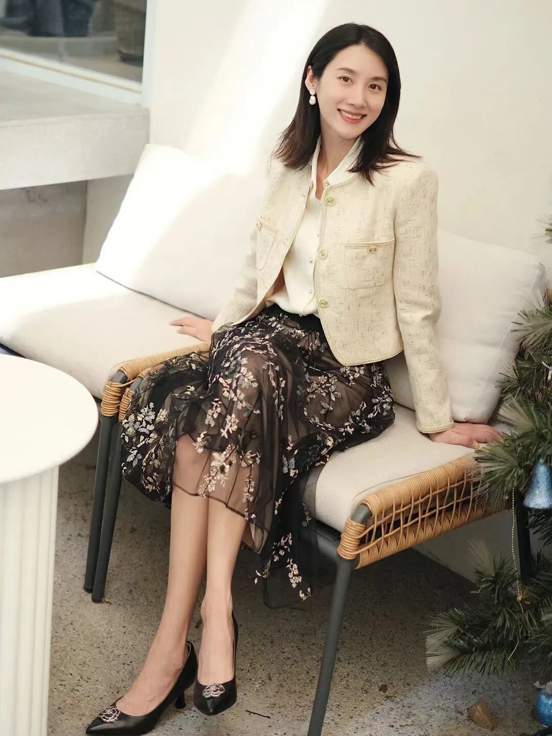 西装搭配裙子看似不搭配,其实很漂亮。干练的西装展现出柔和的气息,给人一种舒适感,尤其是上班的时候,可以从紧绷的状态中缓解。如果是黑灰色或者藏青色的西装,如果选择搭配裙子,不沉闷容易接近,会让你在职场更受欢迎。