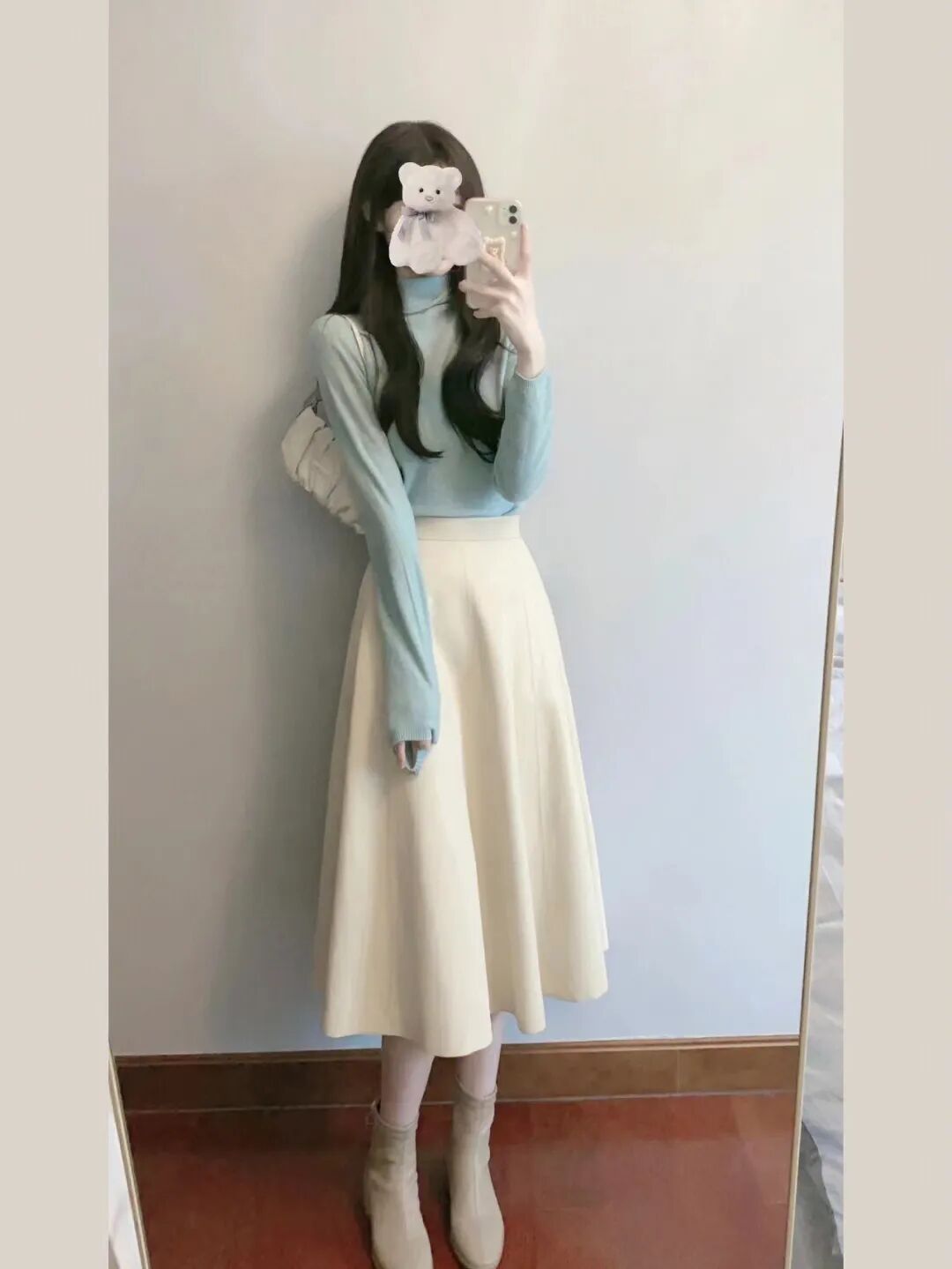 二、深色内搭+亮色外套,对于稍胖的姐妹来说,55分的明暗对比很容易控制,黑色在里面,亮色在外面,既瘦又不失层次感。