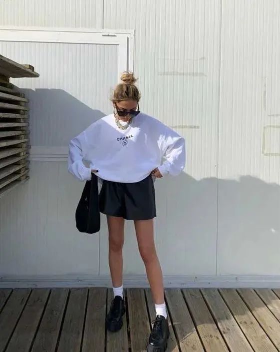 搭卫衣 卫衣的宽容与小皮鞋不谋而合,两者一起穿,随性感帅气自然。