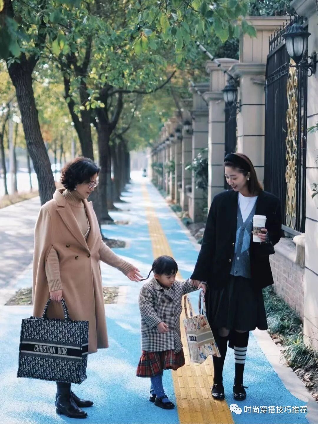 黑色和大地色的配色非常简单平静,但在具体搭配上不需要一板一眼,尽量选择黑色+卡其色配色长风衣,借助配色加分,同时也很抢眼。对于微胖妈妈,建议学鹿鹿妈,搭配卡其裤穿出好身材!