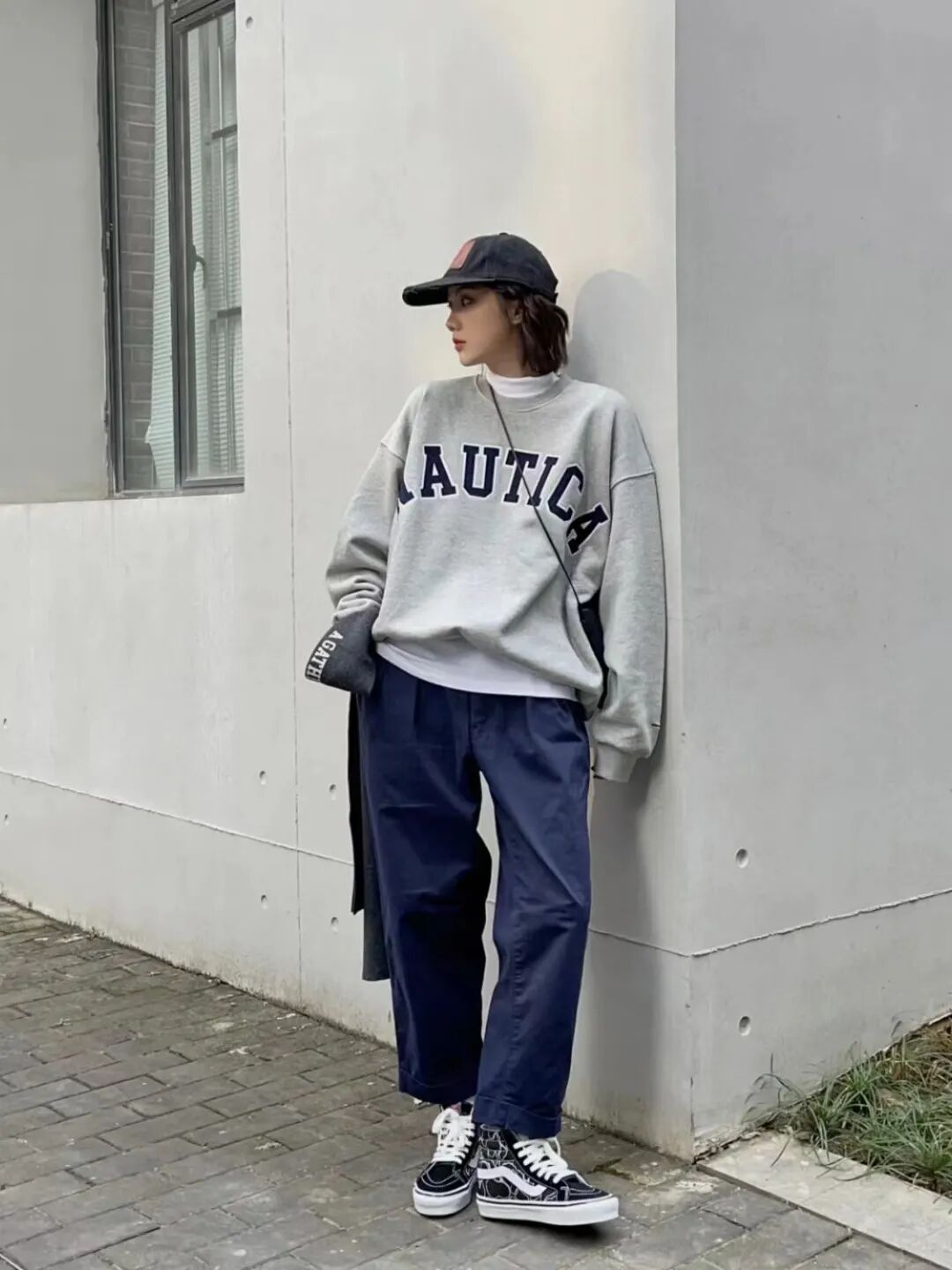 阔腿裤搭配同样宽松的卫衣,营造出自然整洁的巧妙组合,想不好看都难!