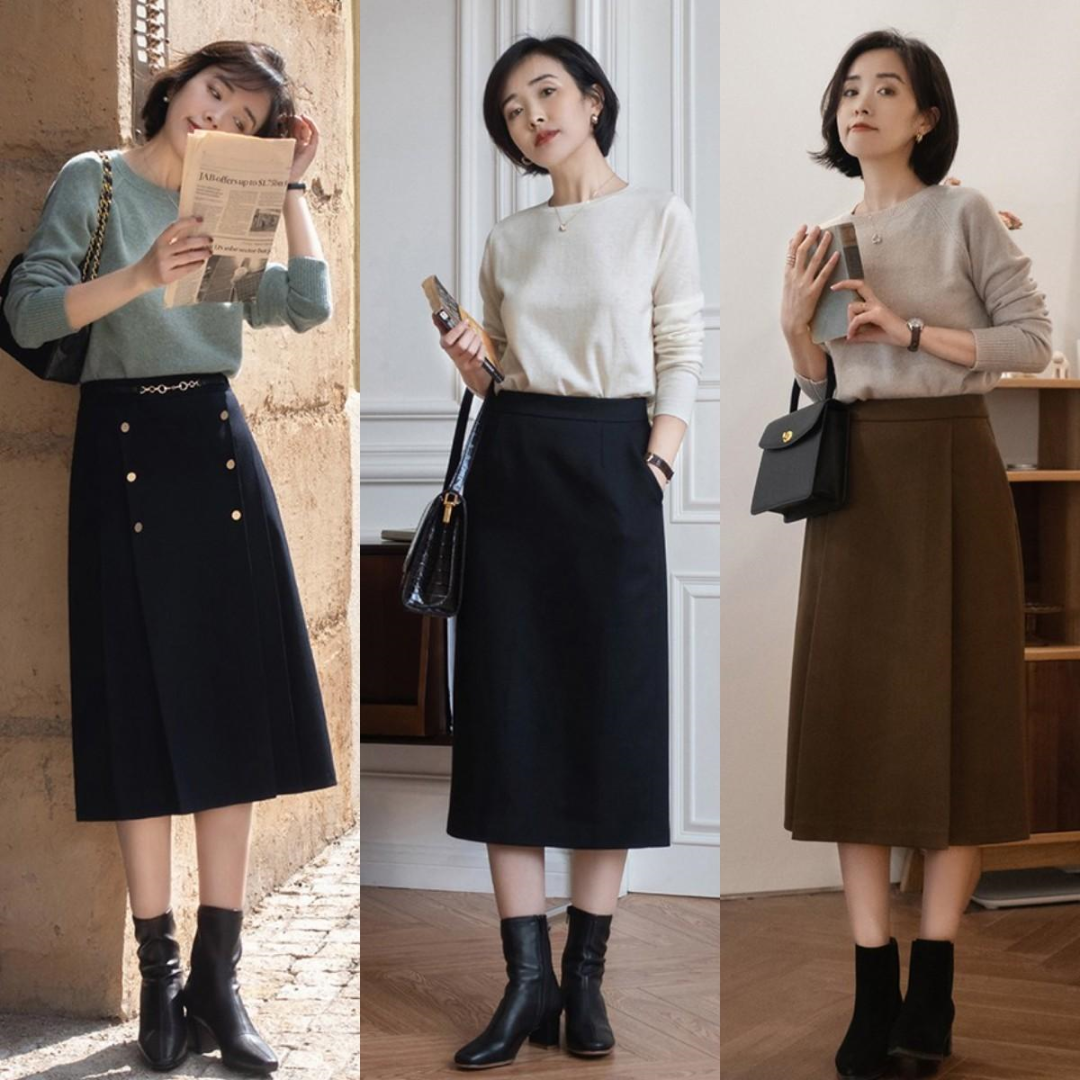 鞋子在外出购物时非常重要,针织衫+半裙是温柔的基础。这时,鞋子的作用就体现出来了。比如猫跟鞋和杏仁头设计的低跟鞋,会让整体至少年轻3岁。