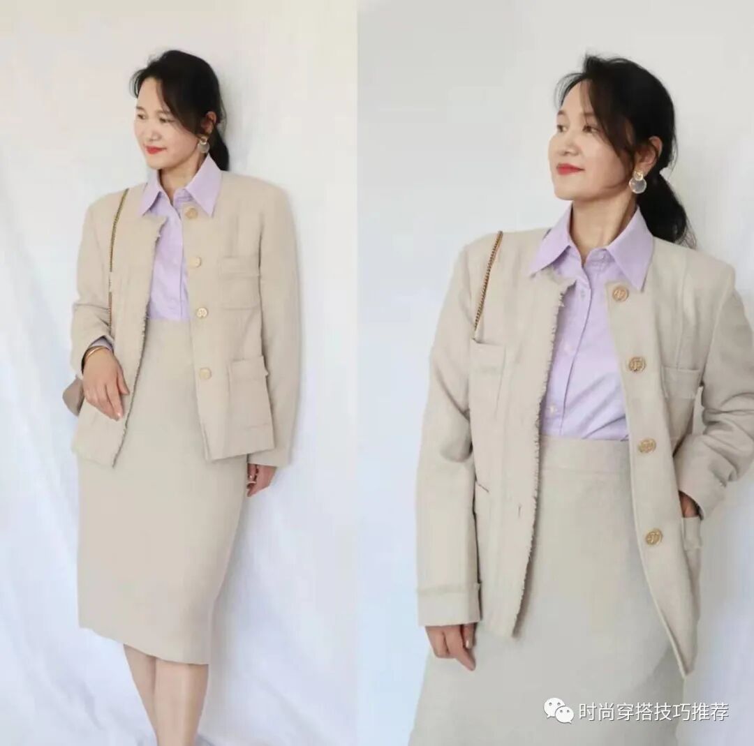 职场清新正式。look,经常使用衬衫,当然,在秋冬也需要外套的配合,以确保温暖和时尚的完美结合。图中,该造型采用了相同颜色的外套和裙子,进一步加强了简单大方的气质。风衣本身带着些潇洒的属性,它对于气质的构造是鲜明的,可以轻而易举的提升女性的气场,这时配一件半身裙,就使原本酷飒的风格中多了些柔和感,让整体多了几分优雅风情版权申明素材/网络,若有侵权请联系删除