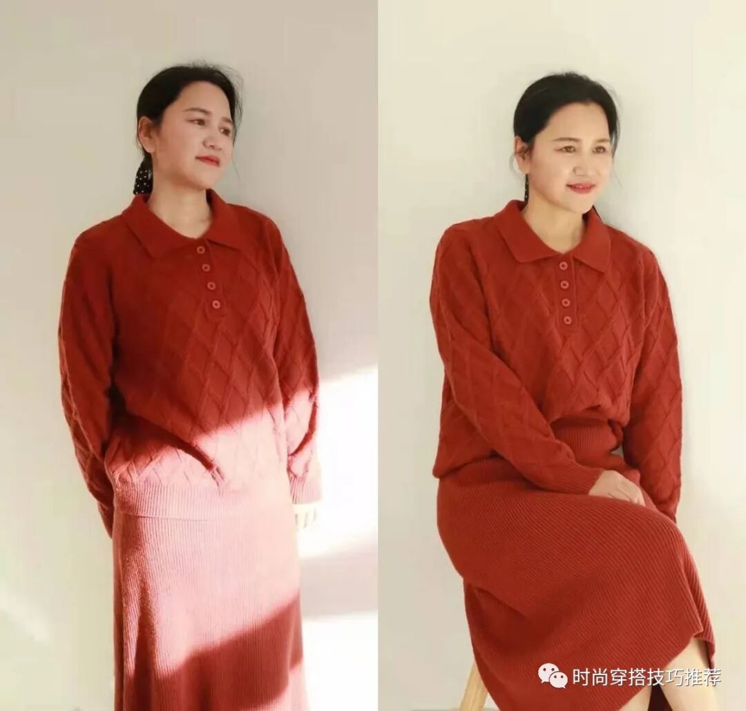 这套衣服采用了同色系的搭配理念,番茄红色的使用明亮醒目,使画面看起来有很强的统一感,整体散发出繁荣的感觉。当然,在搭配各种衣服时,我们不能忽视配色和肤色之间的联系。例如,红色可能更适合白皮肤。如果肤色不够白,这种颜色的单一产品应谨慎使用。